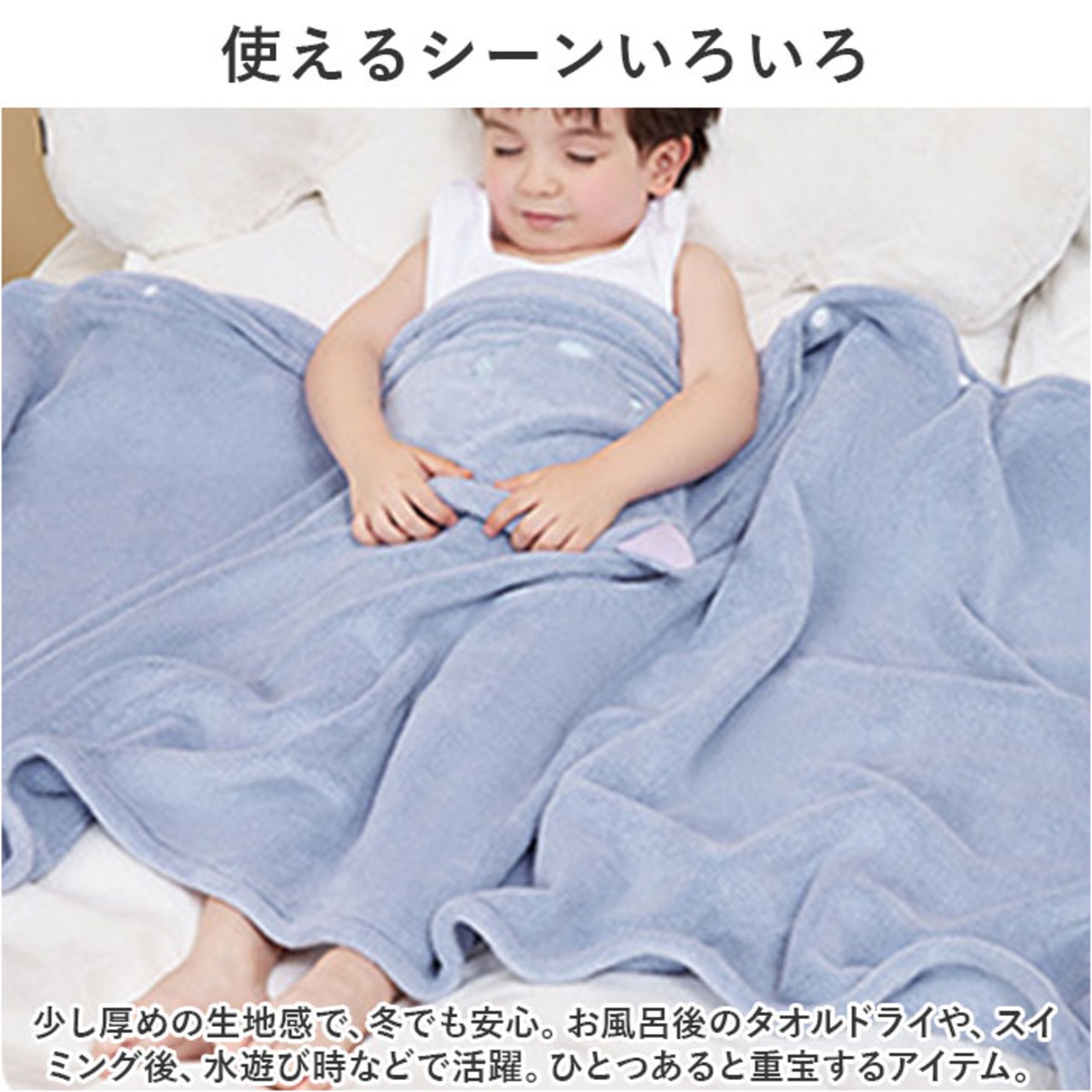 ・少し厚めの生地感で、冬でも安心。お風呂後のタオルドライや、スイミング後、水遊び時などで活躍。ひとつあると重宝するアイテム。