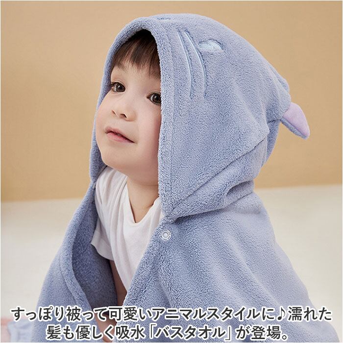 ・すっぽり被って可愛いアニマルスタイルに♪濡れた髪も優しく吸水「バスタオル」が登場。