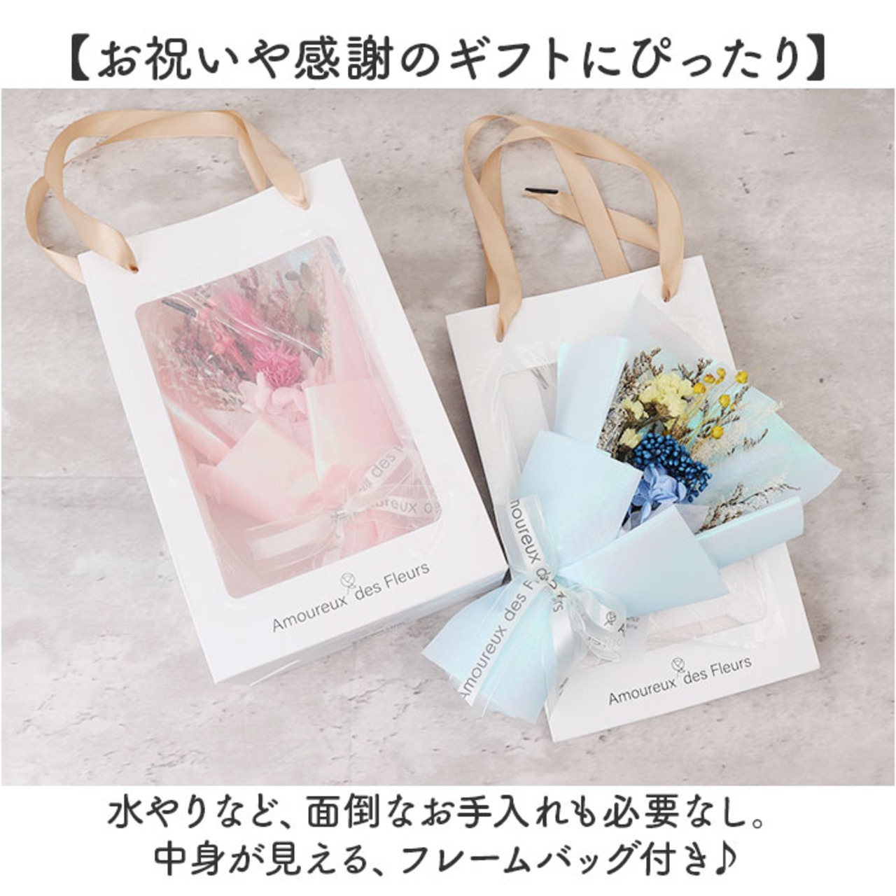 ・水やりなど、面倒なお手入れも必要なし。中身が見える、フレームバッグ付き♪