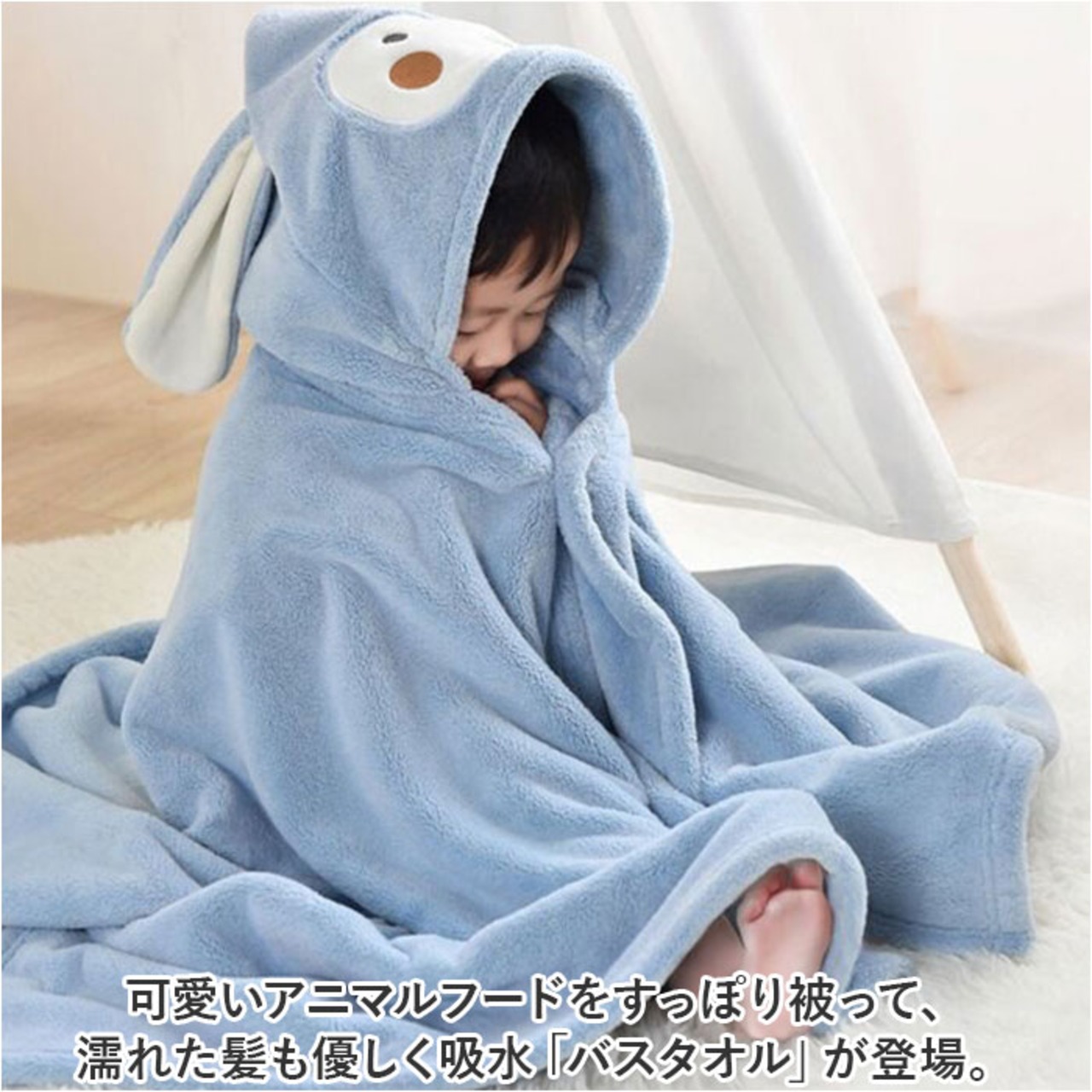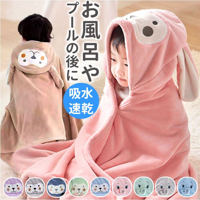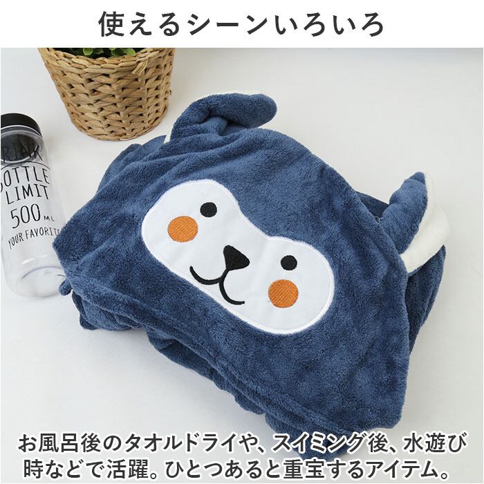 ・可愛いアニマルフードをすっぽり被って、濡れた髪も優しく吸水「バスタオル」が登場。