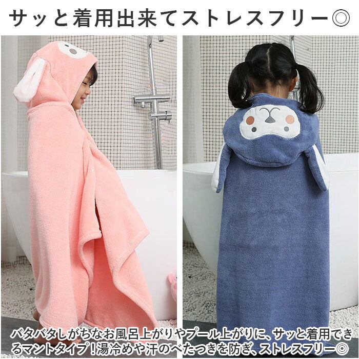 ・バタバタしがちなお風呂上がりやプール上がりに、サッと着用できるマントタイプ!湯冷めや汗のべたつきを防ぎ、ストレスフリー◎