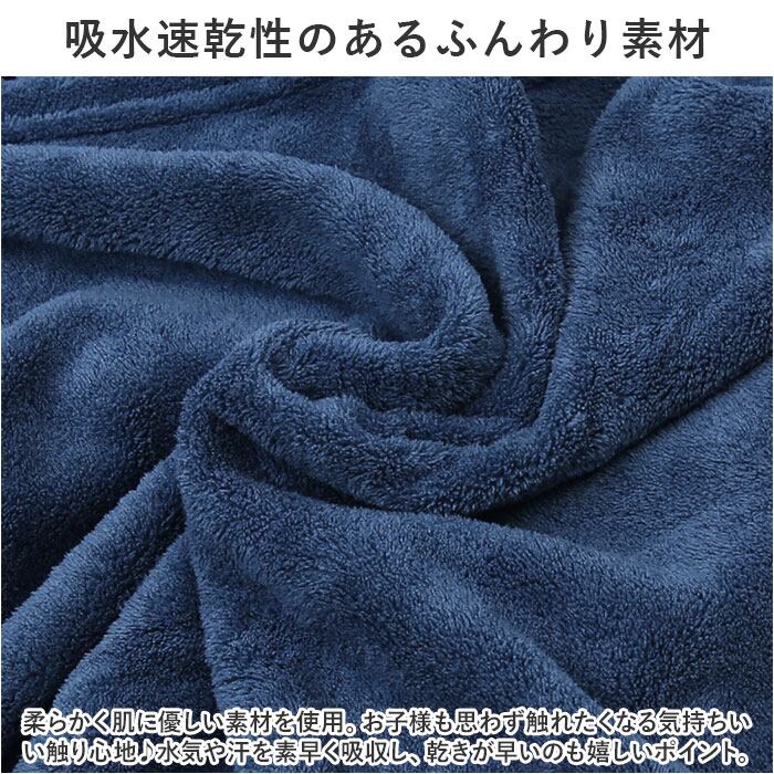 ・柔らかく肌に優しい素材を使用。お子様も思わず触れたくなる気持ちいい触り心地♪水気や汗を素早く吸収し、乾きが早いのも嬉しいポイント。
