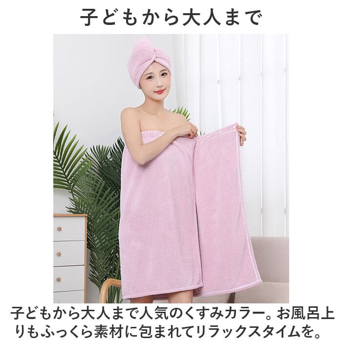 ・子どもから大人まで人気のくすみカラーとリボンがアクセント。お風呂上りもふっくら素材に包まれてリラックスタイムを。