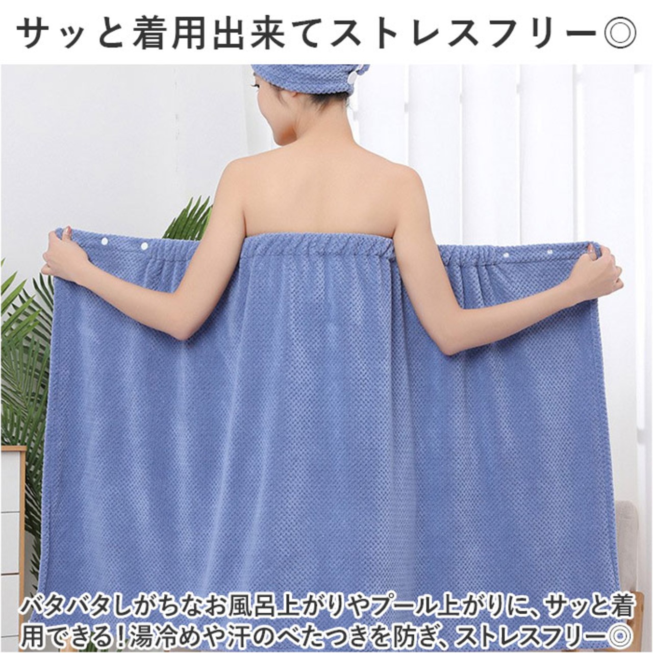 ・バタバタしがちなお風呂上がりやプール上がりに、サッと着用できる!湯冷めや汗のべたつきを防ぎ、ストレスフリー◎