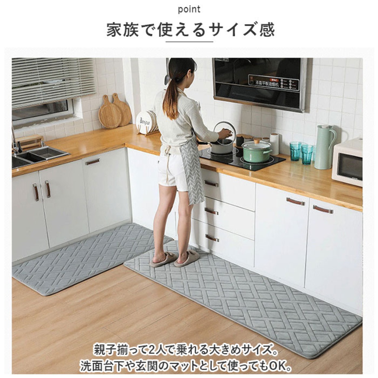 ・親子揃って2人で乗れる大きめサイズ。洗面台下や玄関のマットとして使ってもOK。