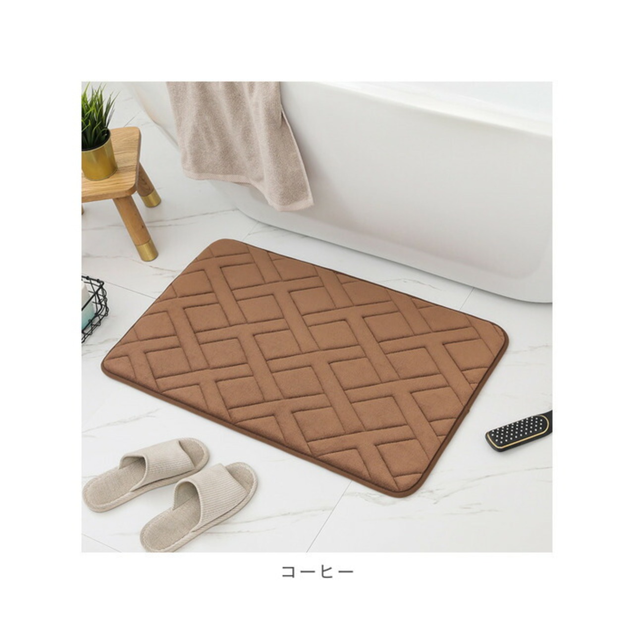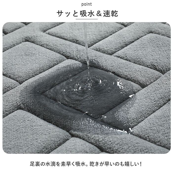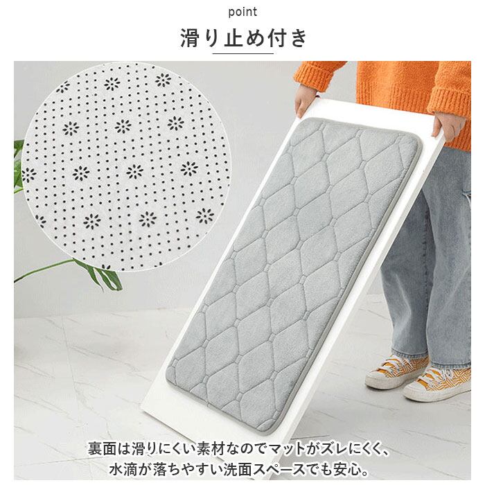 ・裏面は滑りにくい素材なのでマットがズレにくく、水滴が落ちやすい洗面スペースでも安心。