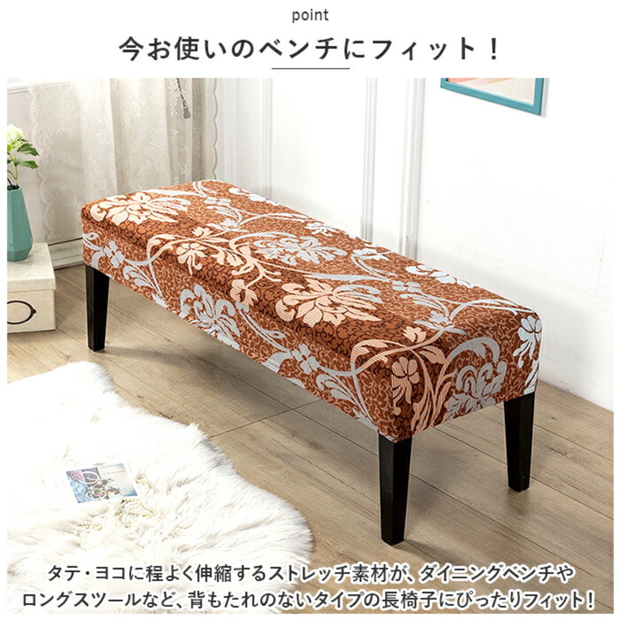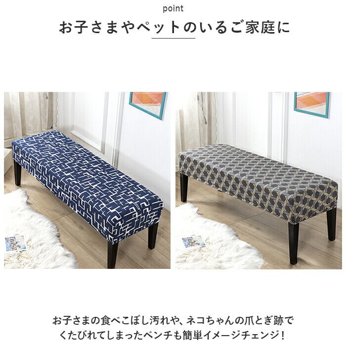 ・タテ・ヨコに程よく伸縮するストレッチ素材が、ダイニングベンチやロングスツールなど、背もたれのないタイプの長椅子にぴったりフィット!