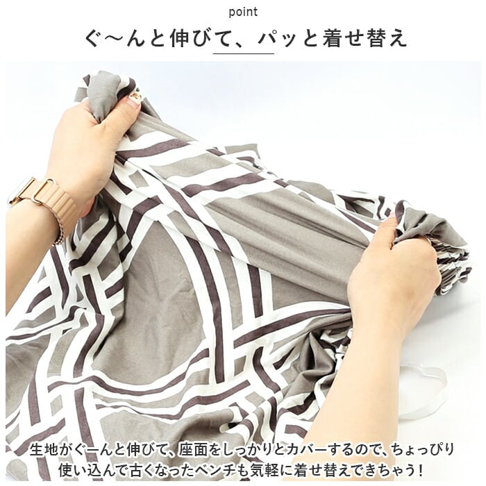 ・生地がぐーんと伸びて、座面をしっかりとカバーするので、ちょっぴり使い込んで古くなったベンチも気軽に着せ替えできちゃう!