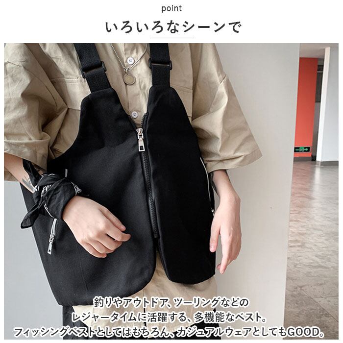 ベストバッグ 通販 多機能ベスト フィッシングベスト キャンプベスト アウトドアベスト アウトドアバッグ 多ポケット ショルダーバッグ 肩掛け 斜めがけ 袖なし メンズ レディース ツーリング バイク サイクリング 自転車 前開き トップス メンズファッション