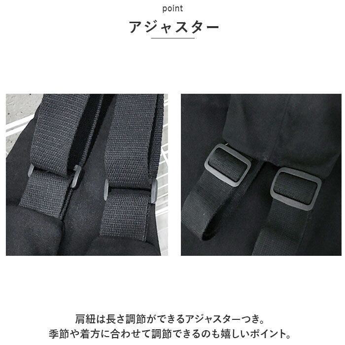 ・肩紐は長さ調節ができるアジャスターつき。季節や着方に合わせて調節できるのも嬉しいポイント。