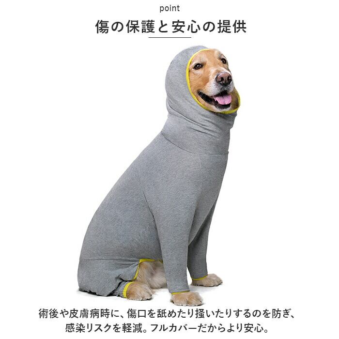 ・術後や皮膚病時に、傷口を舐めたり掻いたりするのを防ぎ、感染リスクを軽減。フルカバーだからより安心。