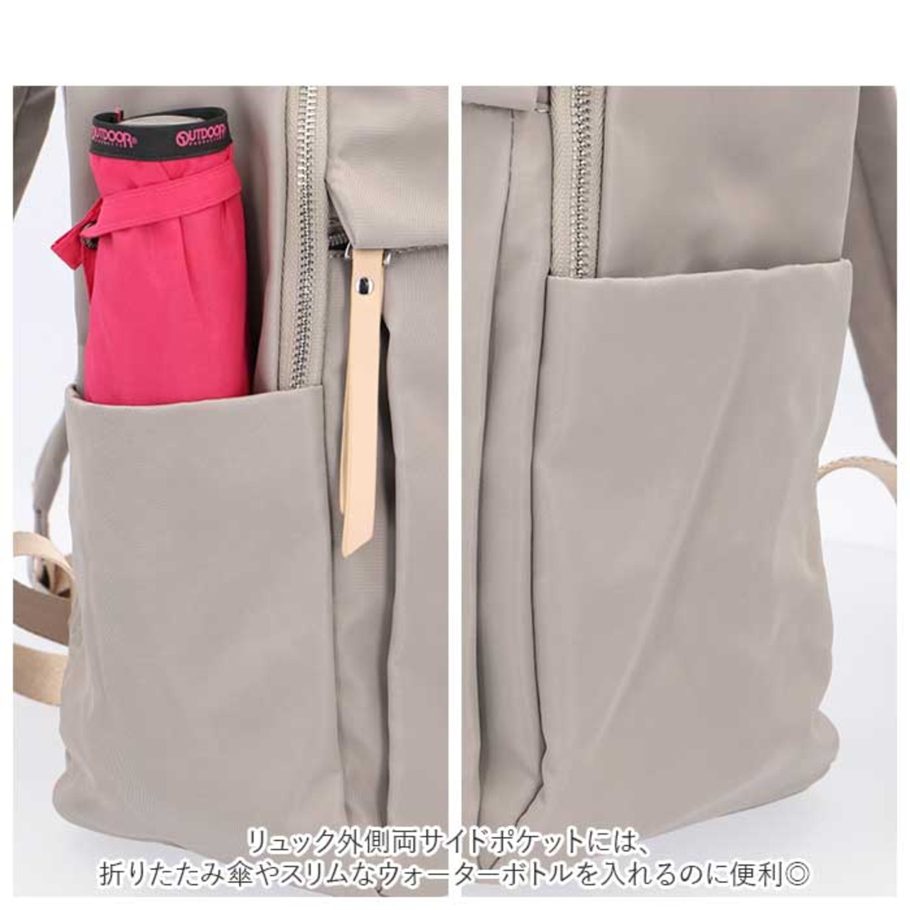 ・リュック外側両サイドポケットには、折りたたみ傘やスリムなウォーターボトルを入れるのに便利◎