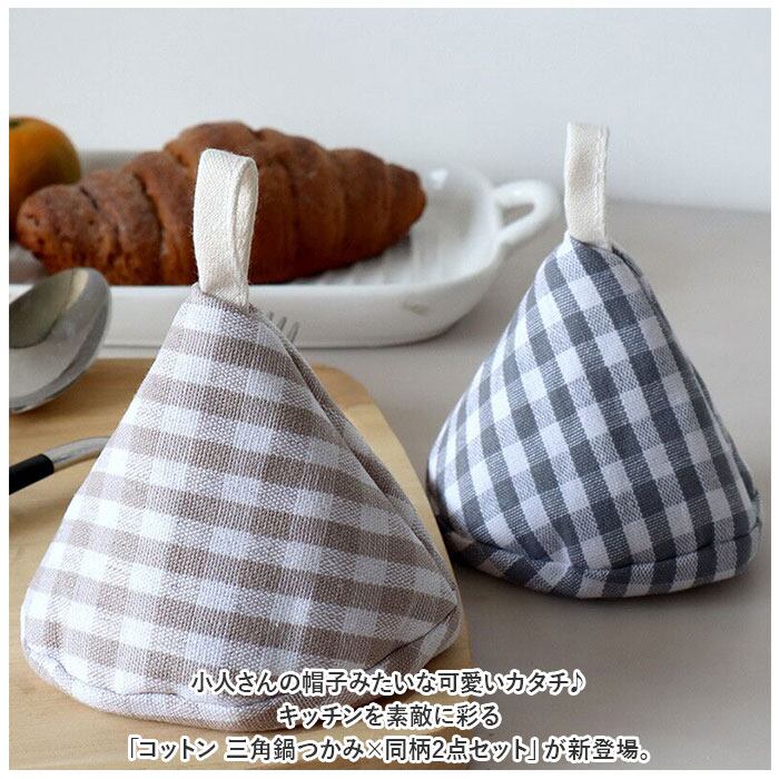 鍋つかみ 三角 2個セット 通販 三角鍋つかみ なべつかみ 2点セット 鍋掴み 三角なべつかみ おしゃれ かわいい 鍋 なべ コットン 綿 さんかく 紐付き キッチンツール キッチン雑貨 キッチンファブリック 配膳用品 キッチン用品