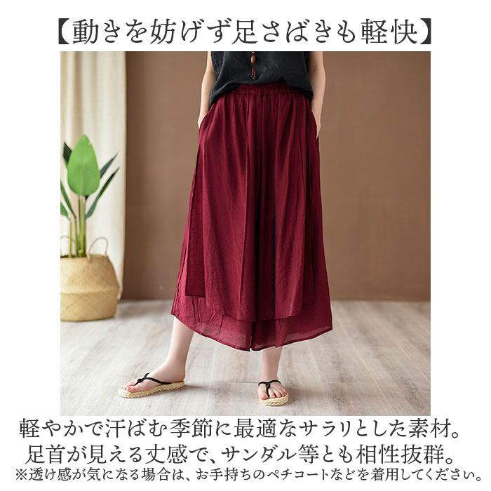 フレア ガウチョパンツ レディース 通販 ワイドパンツ スカーチョ ガウチョ パンツ スカートパンツ スカート見えパンツ スカンツ イージーワイドパンツ 9分丈 九分丈 ウエストゴム ナチュラル 体型カバー おしゃれ きれいめ ボトムス レディースファッション