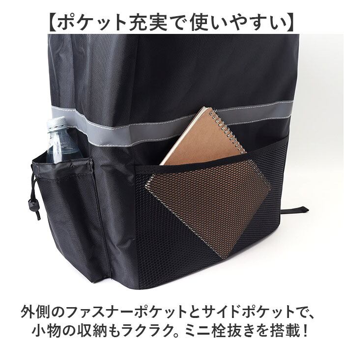 ・悪天や夜間の移動も安心の反射板つき。レジャーや夜道でもピカッと目立つ、うれしい作り。