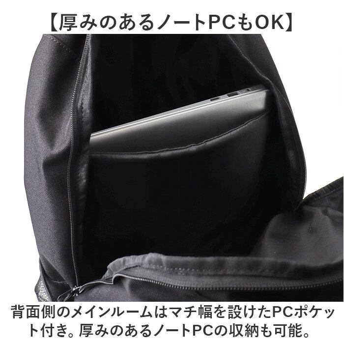 ・背面側のメインルームはマチ幅を設けたPCポケット付き。厚みのあるノートPCの収納も可能。