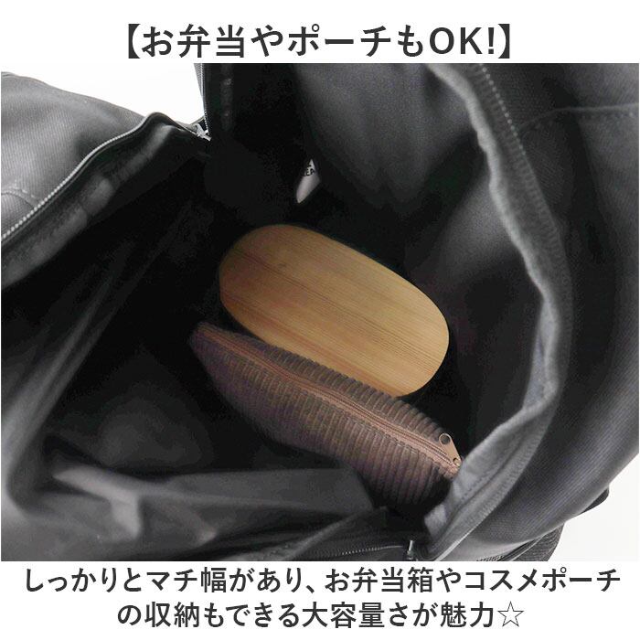 ・しっかりとマチ幅があり、お弁当箱やコスメポーチの収納もできる大容量さが魅力☆