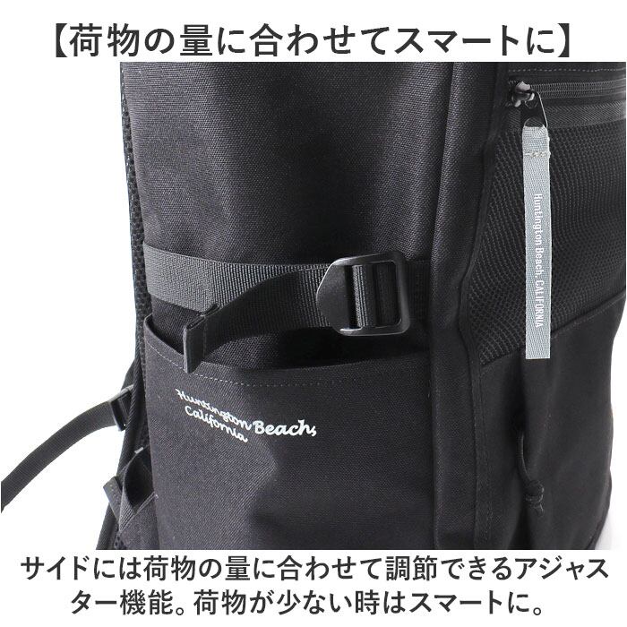 ・サイドには荷物の量に合わせて調節できるアジャスター機能。荷物が少ない時はスマートに。