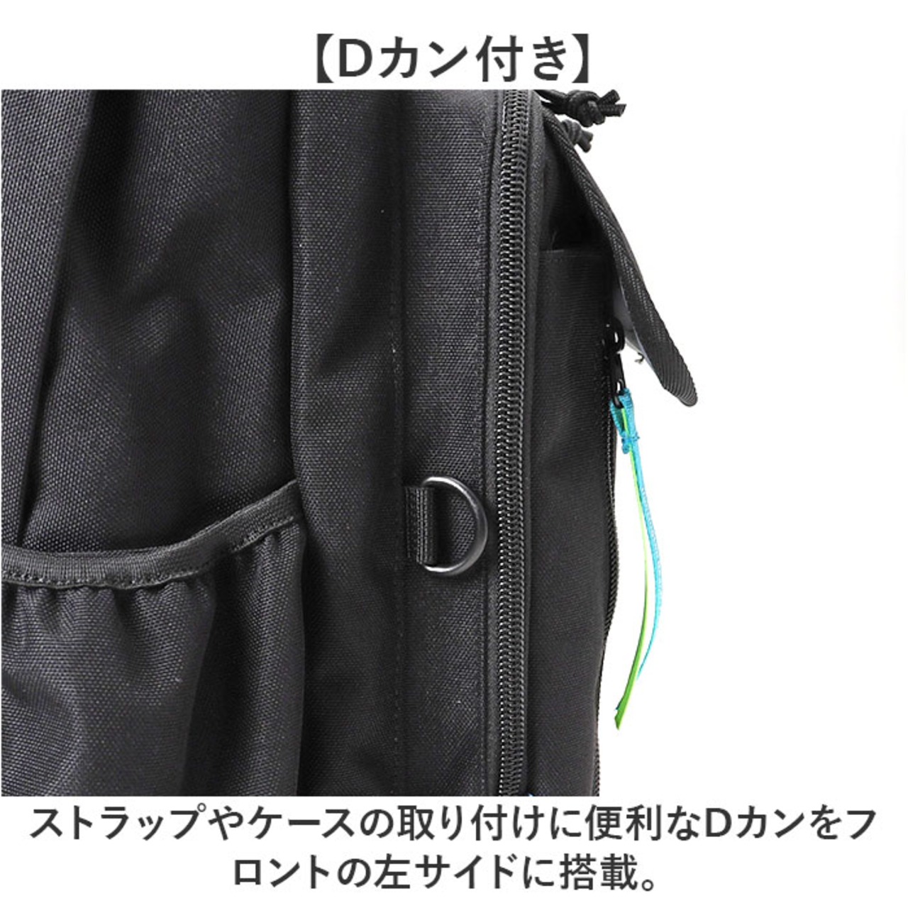 ・ストラップやケースの取り付けに便利なDカンをフロントの左サイドに搭載。