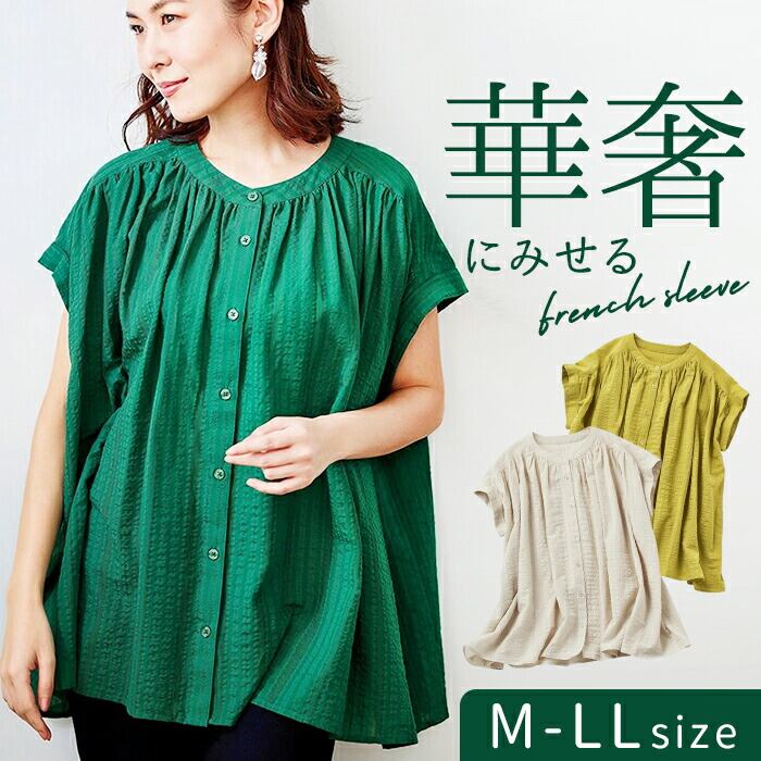 綿レーヨンフレンチスリーブブラウス