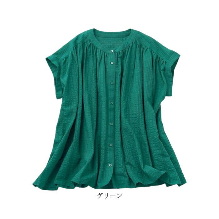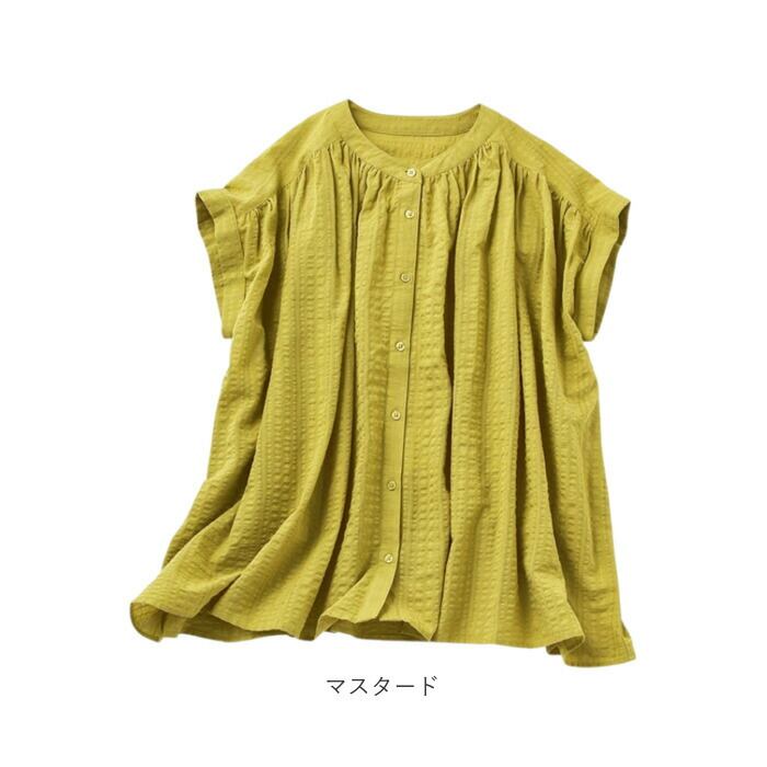 ブラウス ノーカラー レディース 961604 通販 シャツ レディースブラウス レディースシャツ ノーカラーシャツ フレンチスリーブ 綿 レーヨン ゆったり 無地 シンプル 春 夏 上品 カジュアル 女性用 女性 おしゃれ オシャレ トップス ファッション
