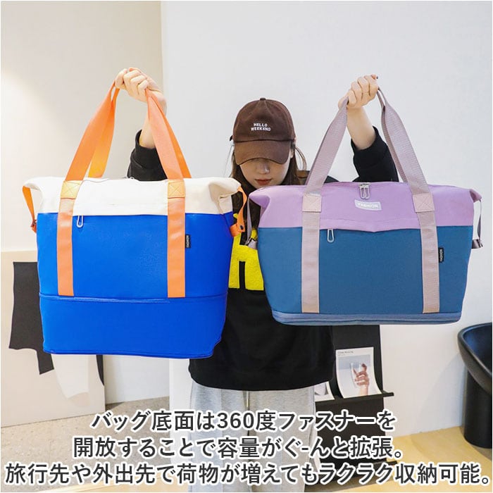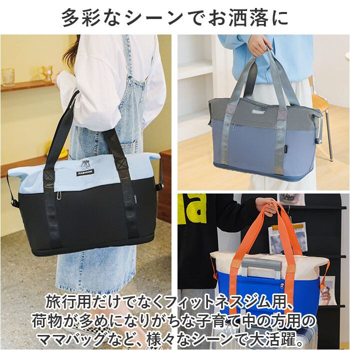 ・旅行用だけでなくフィットネスジム用、荷物が多めになりがちな子育て中の方用のママバッグなど、様々なシーンで大活躍。
