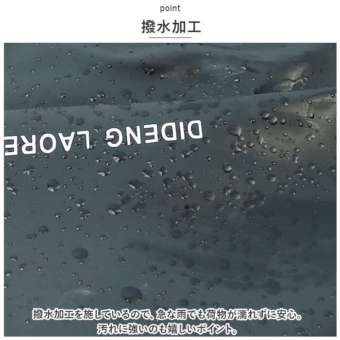 ・撥水加工を施しているので、急な雨でも荷物が濡れずに安心。汚れに強いのも嬉しいポイント。