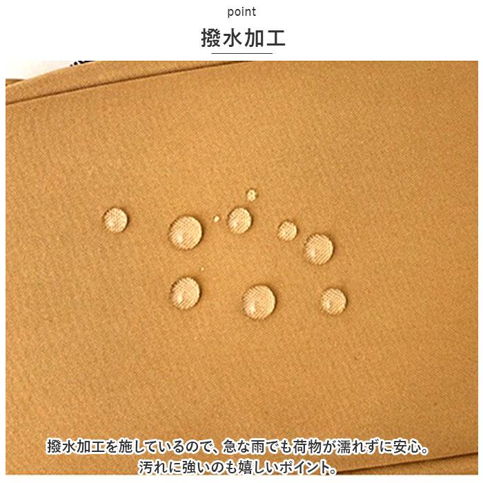 ・撥水加工を施しているので、急な雨でも荷物が濡れずに安心。汚れに強いのも嬉しいポイント。