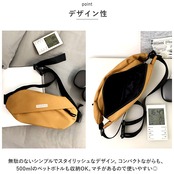 ・無駄のないシンプルでスタイリッシュなデザイン。コンパクトながらも、500mlのペットボトルも収納OK。マチがあるので使いやすい◎