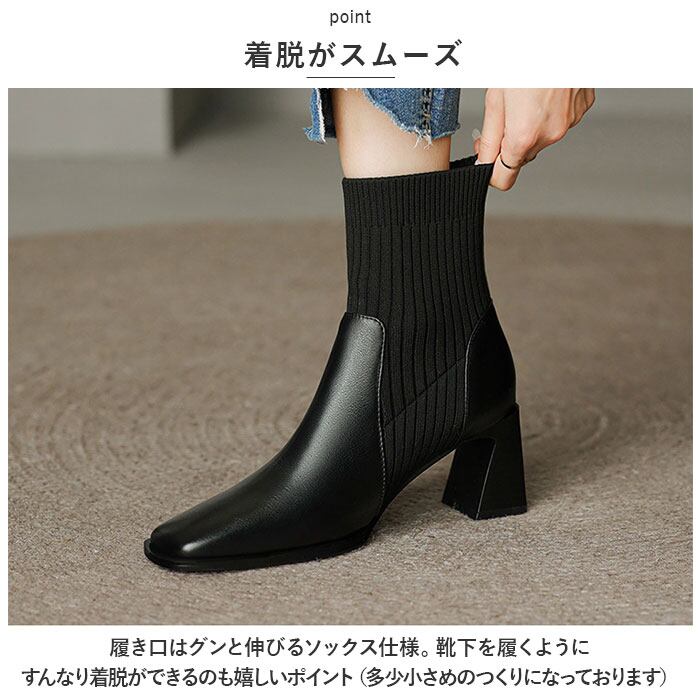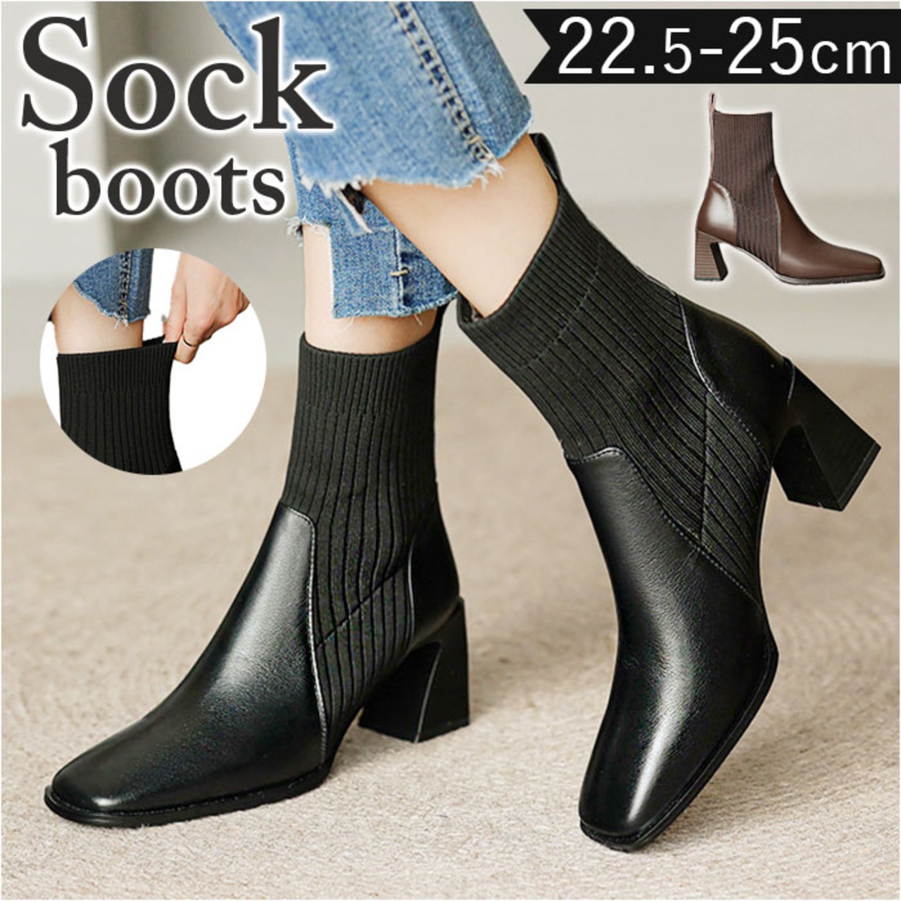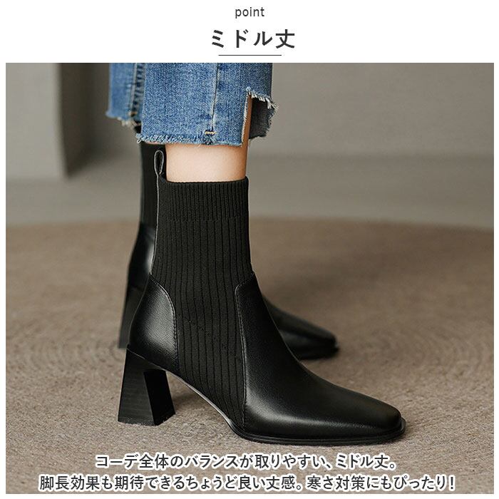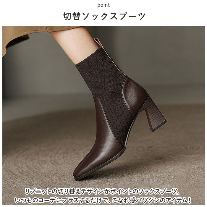 ・リブニットの切り替えデザインがポイントのソックスブーツ。いつものコーデにプラスするだけで、こなれ感バツグンのアイテム!