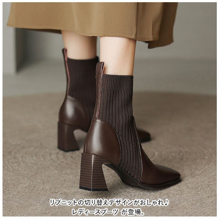 ・リブニットの切り替えデザインがおしゃれ♪ レディースブーツ が登場。