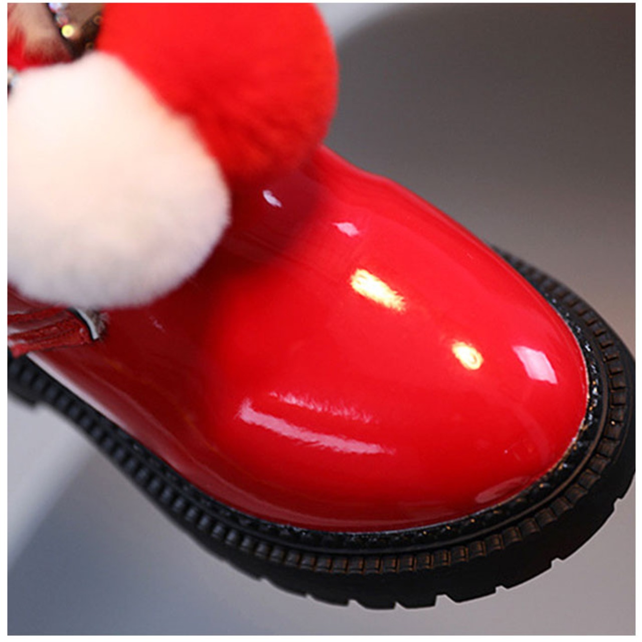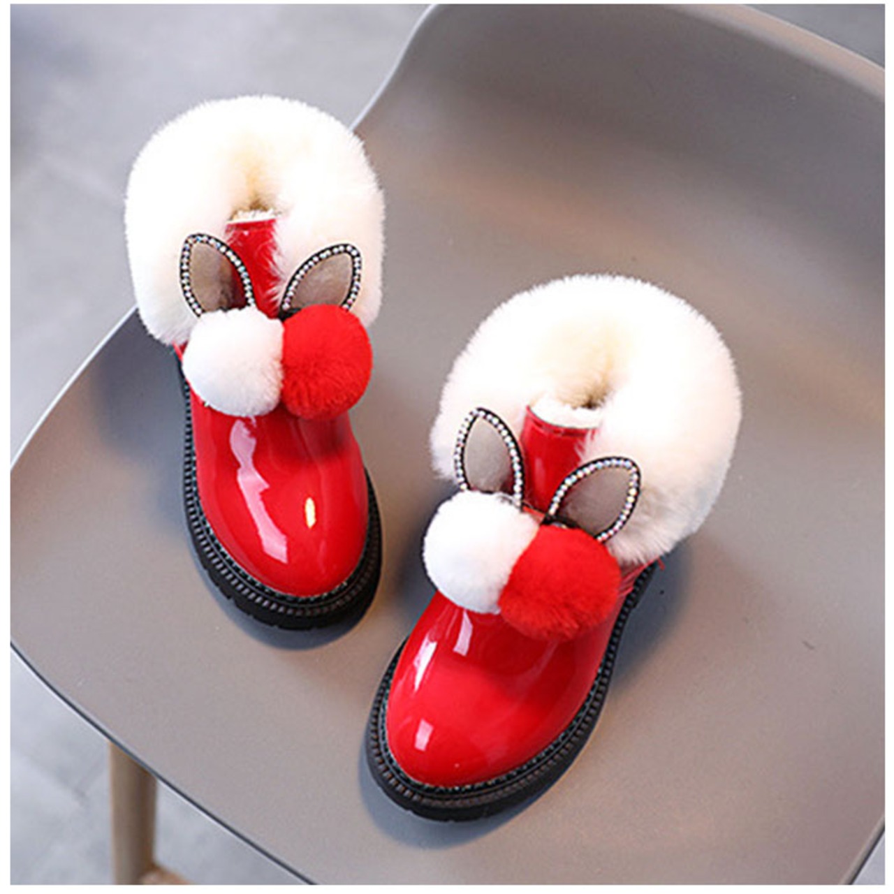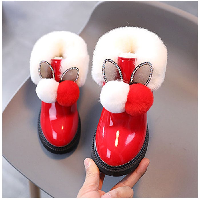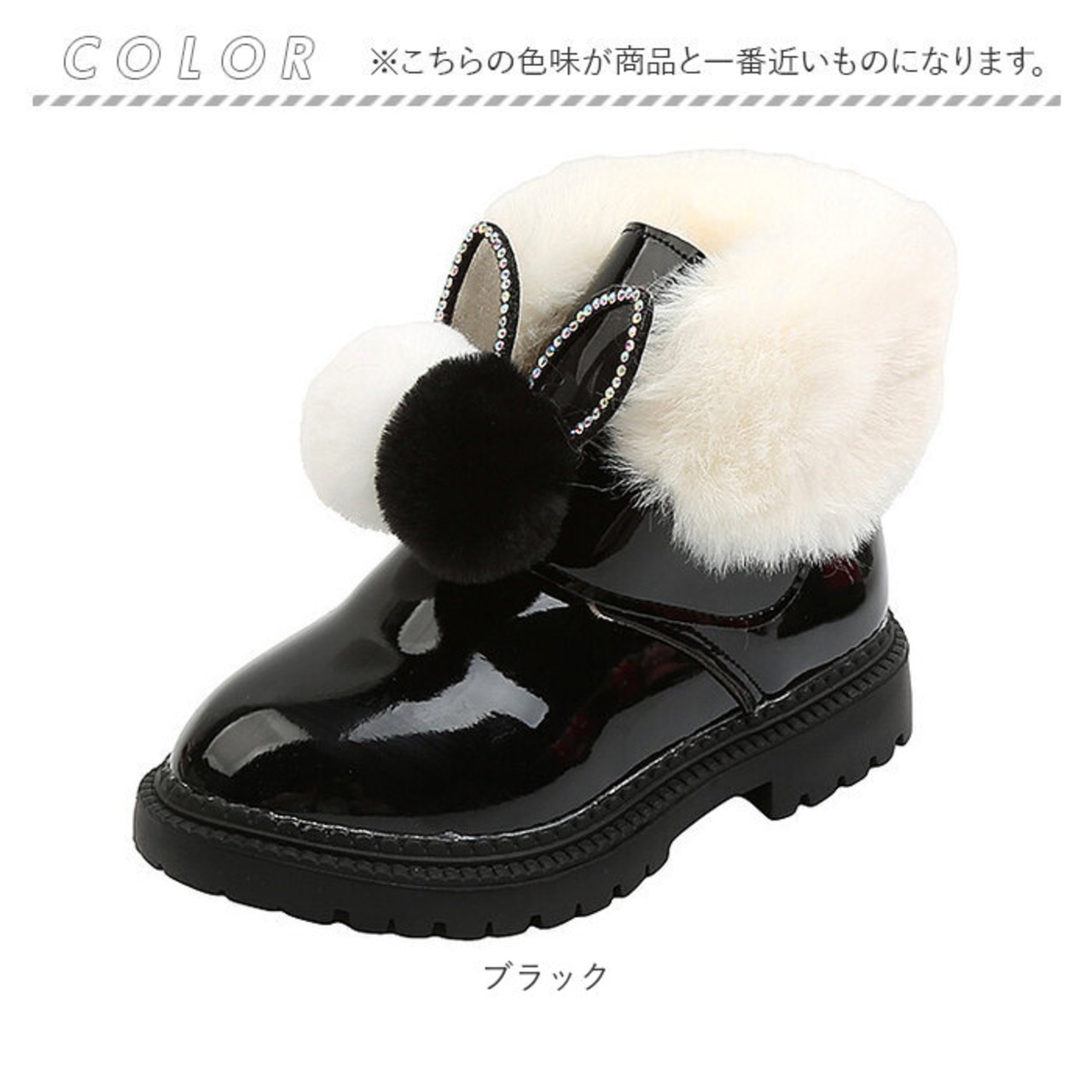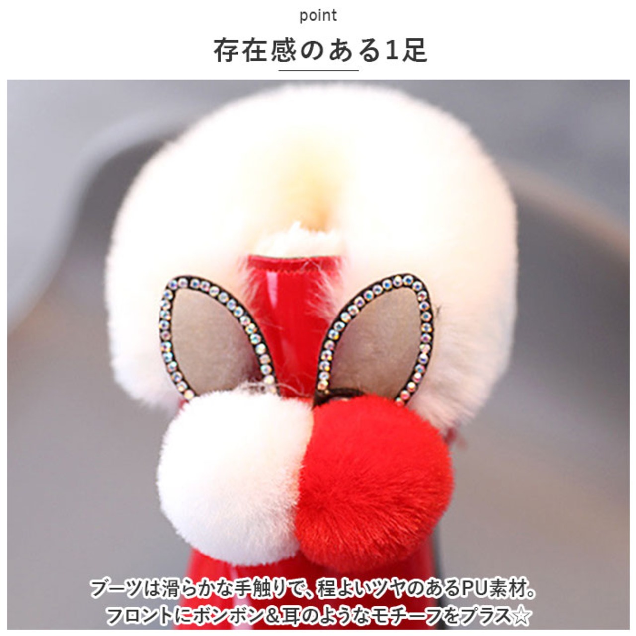 ・ブーツは滑らかな手触りで、程よいツヤのあるPU素材。フロントにボンボン&耳のようなモチーフをプラス☆
