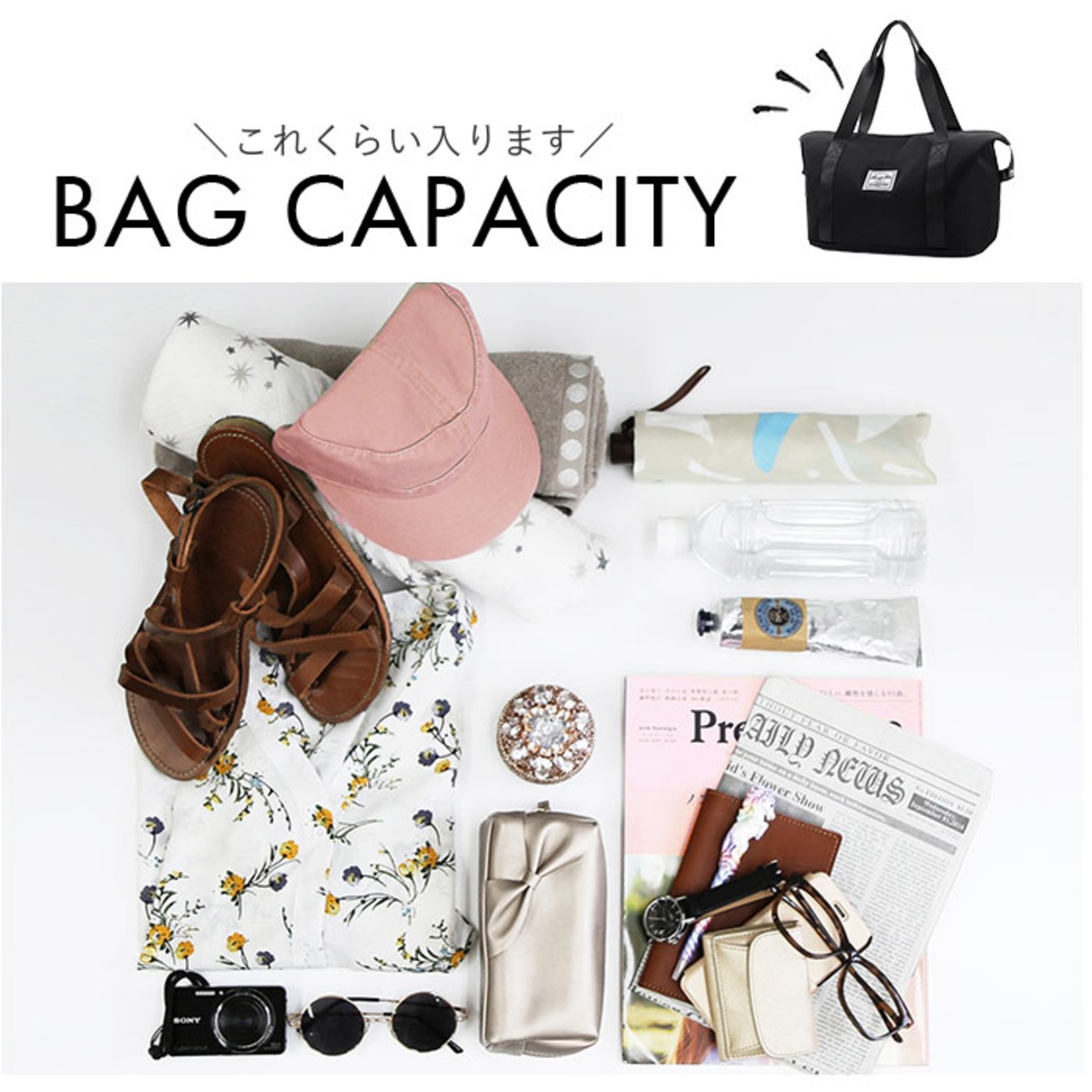 ・旅行用だけでなくフィットネスジム用、荷物が多めになりがちな子育て中の方用のママバッグなど、様々なシーンで大活躍。