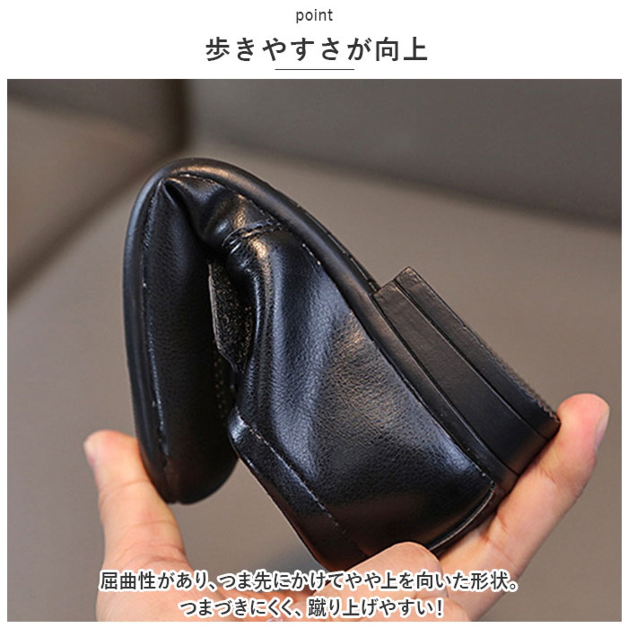 ・屈曲性があり、つま先にかけてやや上を向いた形状。つまづきにくく、蹴り上げやすい!