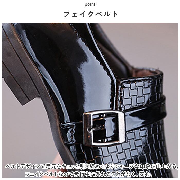 ・ベルトデザインで足元をキュッと引き締め☆よりシャープな印象に仕上がる。フェイクベルトなので歩行中に外れることがなく、安心。