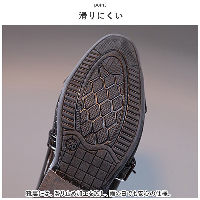 ・靴裏には、滑り止め加工を施し、雨の日でも安心の仕様。