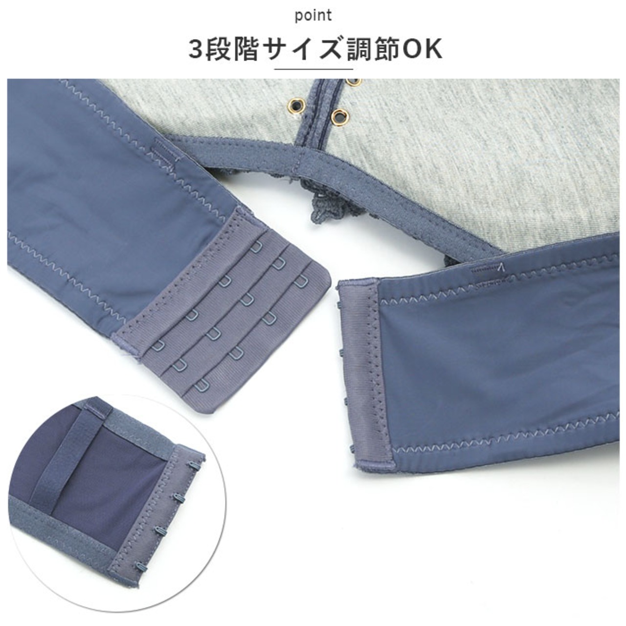 ・背面ホックで自分サイズに調節。