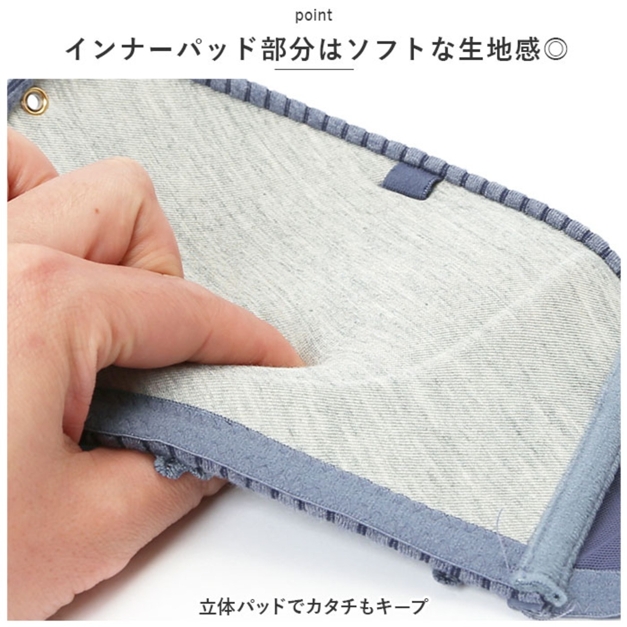 ・インナーパッド部分はソフトな生地感◎立体パッドでカタチもキープ。