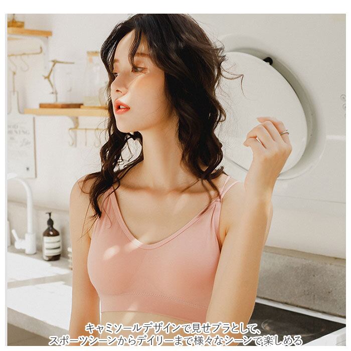 ・キャミソールデザインで見せブラとして、スポーツシーンからデイリーまで様々なシーンで楽しめる。