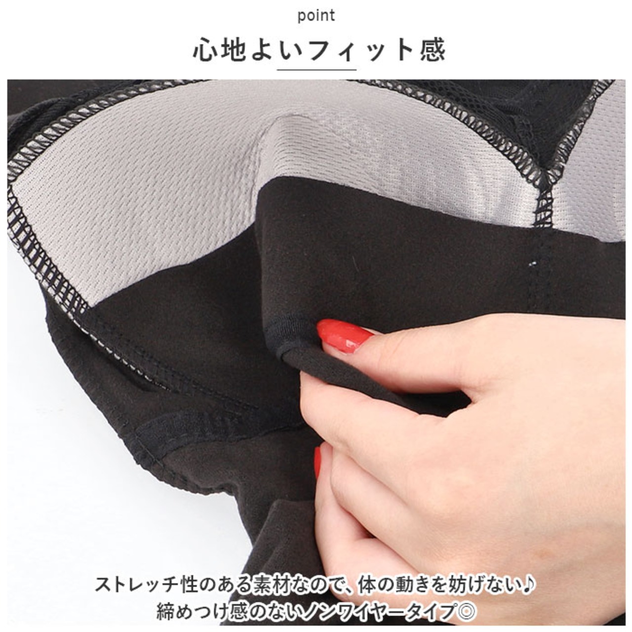 ・ストレッチ性のある素材なので、体の動きを妨げない♪締めつけ感のないノンワイヤータイプ◎