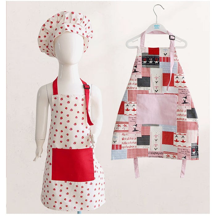 ・エプロンと同じ柄の可愛い帽子付きなので気分はコックさん!?お子様も嬉しいエプロンと帽子の2点セット!