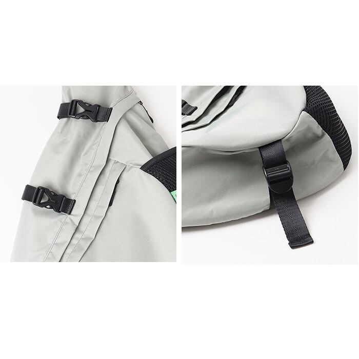・サイドと底面にフィット感を調節できるベルト付き。荷物量に合わせ、フォルムもキープ。