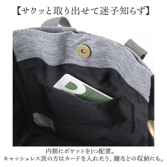 ・内側にポケットを1つ配置。キャッシュレス派の方はカードを入れたり、鍵などの収納にも。