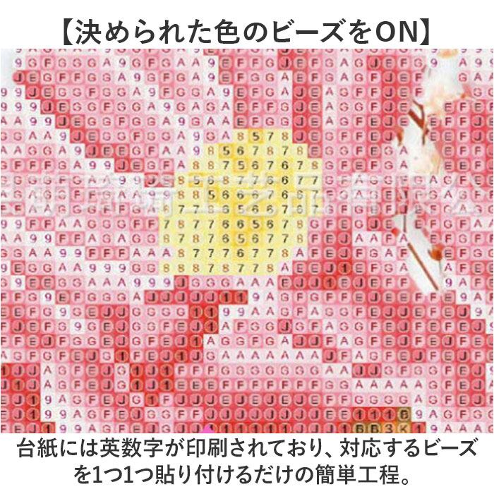 ・台紙には英数字が印刷されており、対応するビーズを1つ1つ貼り付けるだけの簡単工程。