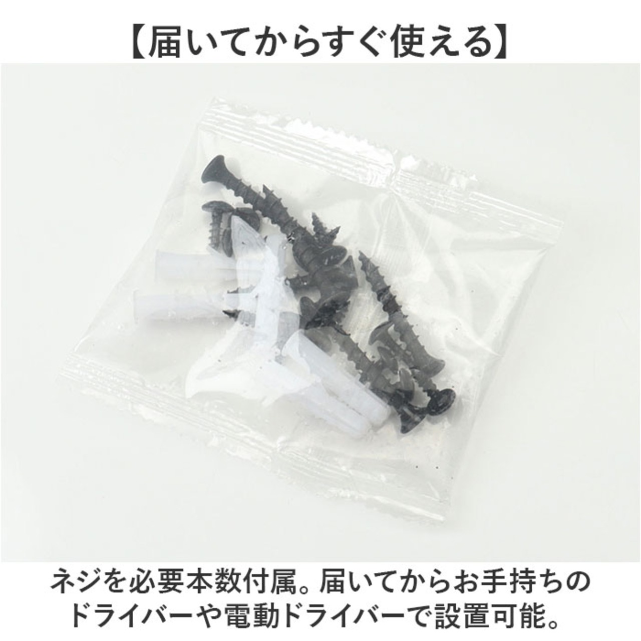 ・ネジを必要本数付属。届いてからお手持ちのドライバーや電動ドライバーで設置可能。