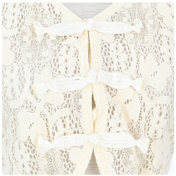 ・透け感のある上品なレース素材。インナーにタンクトップやキャミソールと合わせて着れば今風のレイヤードコーデに!