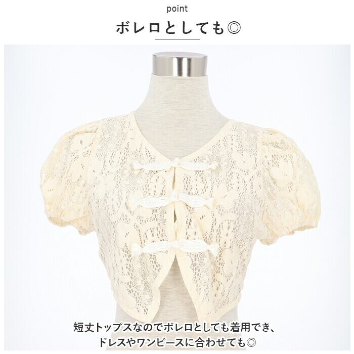 ・短丈トップスなのでボレロとしても着用でき、ドレスやワンピースに合わせても◎