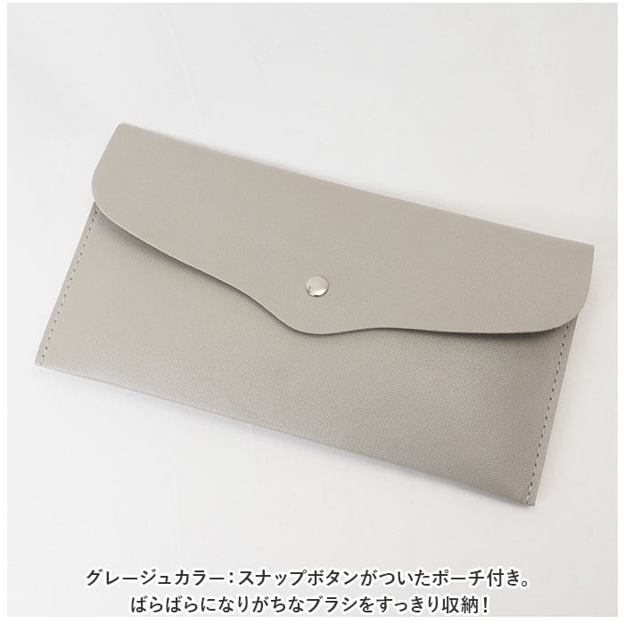 ・グレージュカラー:スナップボタンがついたポーチ付き。ばらばらになりがちなブラシをすっきり収納!