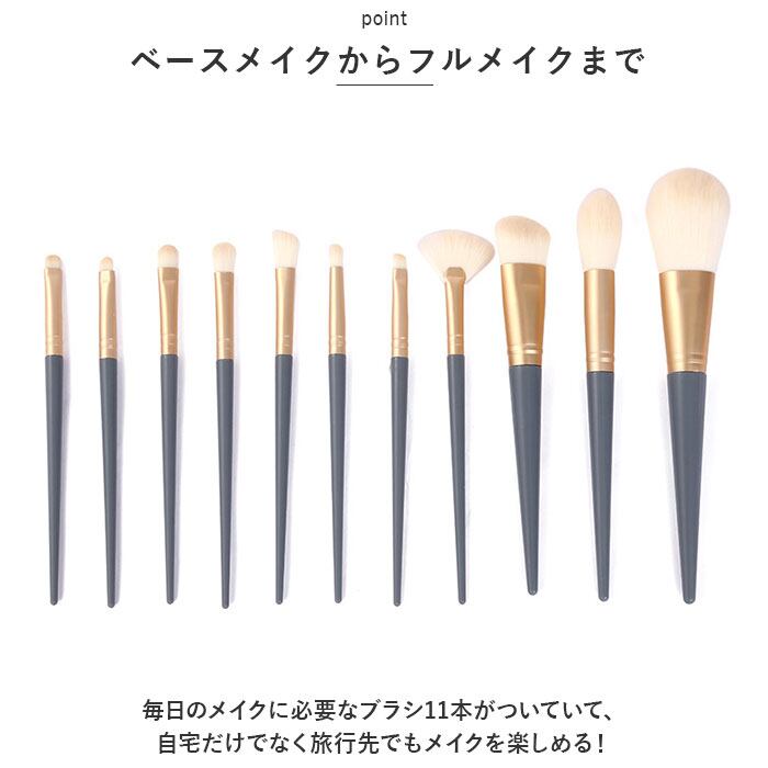 ・毎日のメイクに必要なブラシ11本がついていて、自宅だけでなく旅行先でもメイクを楽しめる!