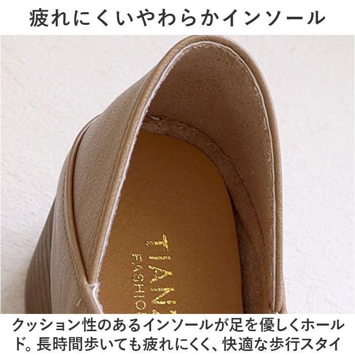 ・クッション性のあるインソールが足を優しくホールド。長時間歩いても疲れにくく、快適な歩行スタイルをサポート。